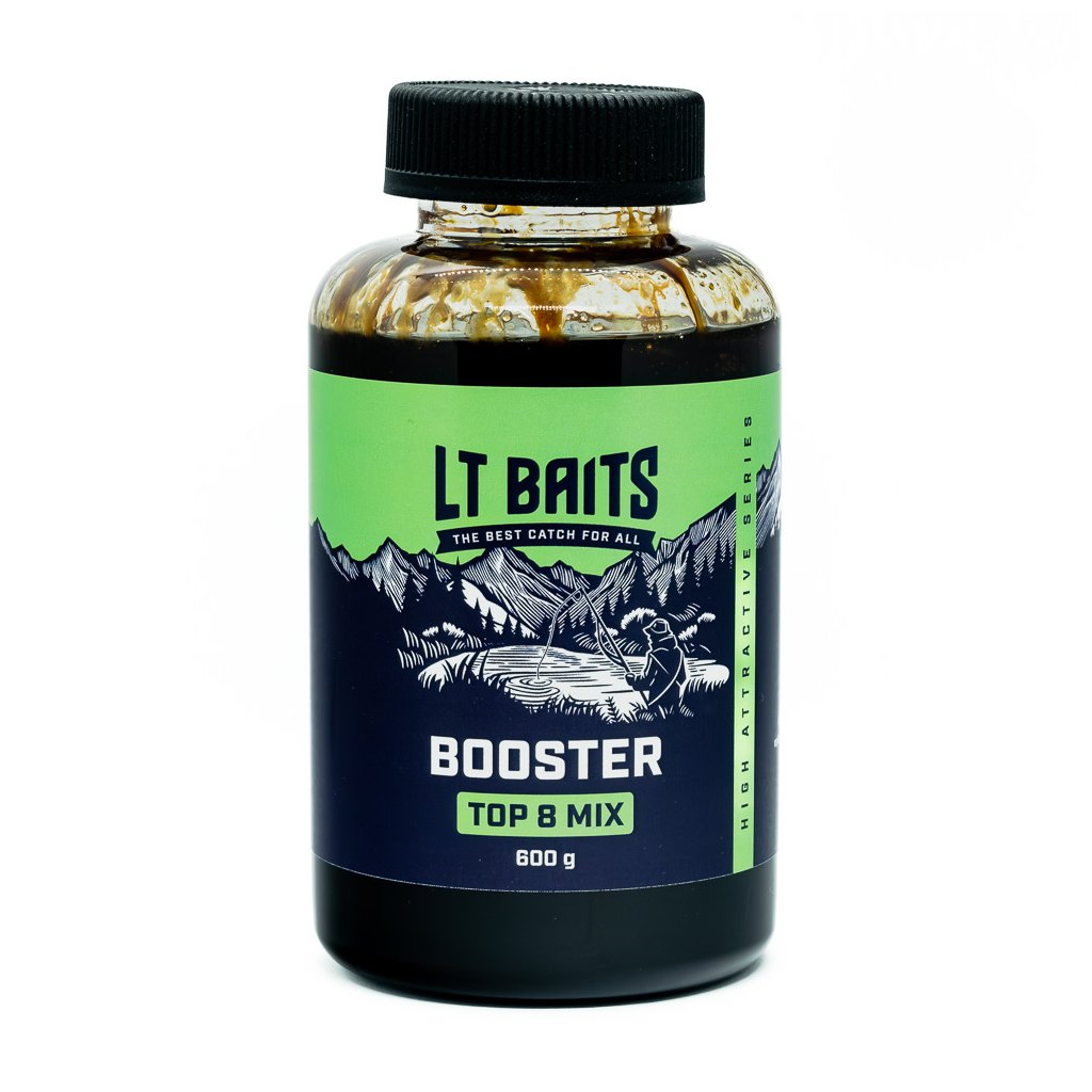 Booster LT Baits Top 8 Mix je tekutý atraktor, který spojuje osm našich nejúspěšnějších příchutí do jednoho extrémně účinného mixu. Sladké, masové, kořeněné i ovocné tóny se ve vodě okamžitě rozprostřou a vytvoří široké spektrum potravních signálů, které dokážou oslovit ryby v jakékoliv náladě. Díky tomu je Top 8 Mix ideální volbou pro rybáře, kteří chtějí mít jistotu, že jejich nástraha bude atraktivní v každé situaci.