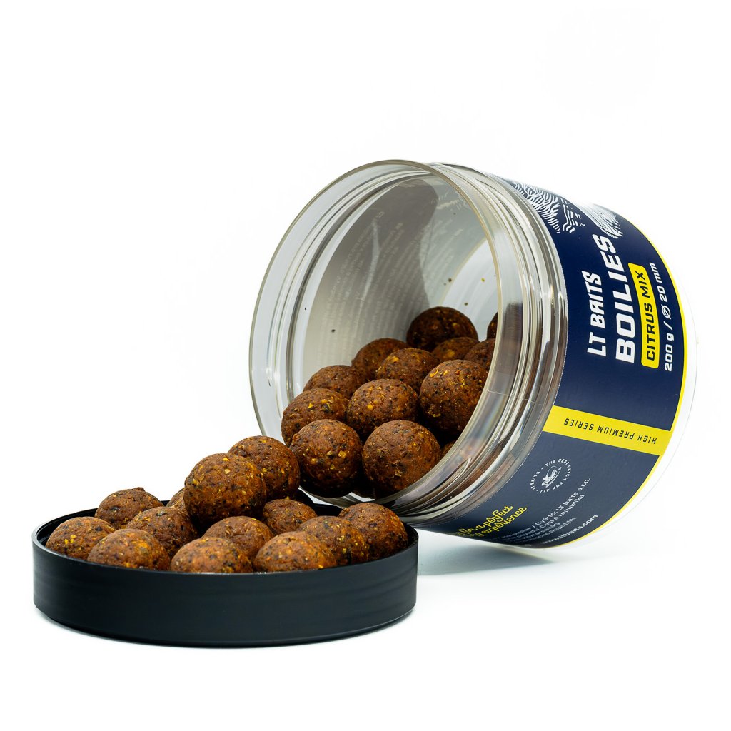 Boilies LT Baits Citrus Mix v balení 200 g vychází ze stejné atraktivní receptury jako naše velká balení, ale díky menšímu množství je ideální pro krátké vycházky, testování nových příchutí nebo jako doplněk k PVA montážím. Tato směs staví na výrazných citrusových esencích, které vytvářejí svěží, rychle se šířící stopu. V kombinaci s proteinovým základem, mléčnými složkami a jemným kořeněným podtónem vzniká nástraha, která reaguje okamžitě a funguje i na přetížených vodách.