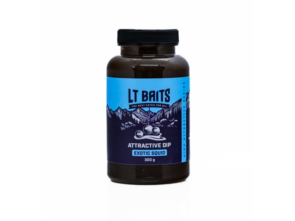 Dip Exotic Squid je navržený pro rybáře, kteří chtějí spojit sílu přírodních mořských složek s výraznou exotickou vůní. Základem je anglická olihňová esence , přírodní rybí a masové složky , mořské řasy a kvalitní tekutá potrava , které vytvářejí silný potravní signál. Exotická složka dodává dipu nezaměnitelný charakter — sladší, výraznější a velmi atraktivní i na přetížených revírech.