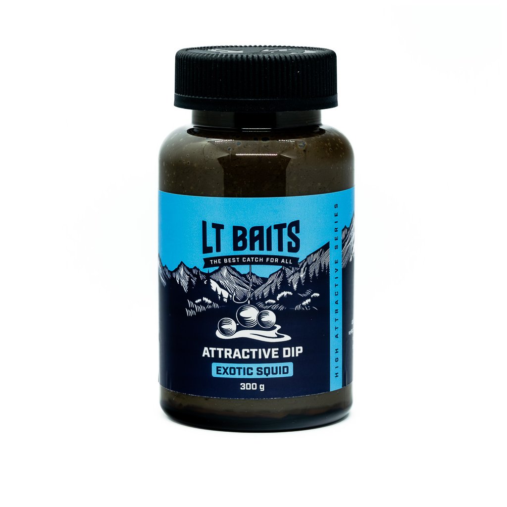 Dip LT Baits Exotic Squid je navržený pro rybáře, kteří chtějí spojit sílu přírodních mořských složek s výraznou exotickou vůní. Základem je anglická olihňová esence, přírodní rybí a masové složky, mořské řasy a kvalitní tekutá potrava, které vytvářejí silný potravní signál. Exotická složka dodává dipu nezaměnitelný charakter – sladší, výraznější a velmi atraktivní i na přetížených revírech.
