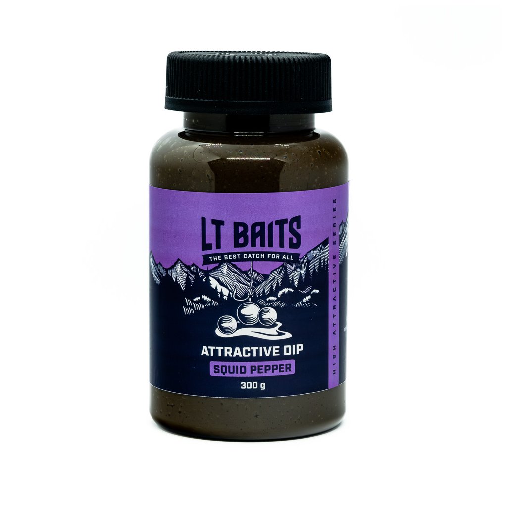 Dip LT Baits Squid Pepper je navržený pro rybáře, kteří chtějí spojit sílu mořských složek s jemně kořeněným podtónem. Základem je olihňové aroma, přírodní rybí a masové složky, mořské řasy, kvalitní tekutá potrava a esence Big Pepper, která dodává dipu pikantní charakter. Tato kombinace vytváří silný potravní signál, který se šíří vodou okamžitě po dopadu a dokáže přilákat ryby i na přetížených revírech.