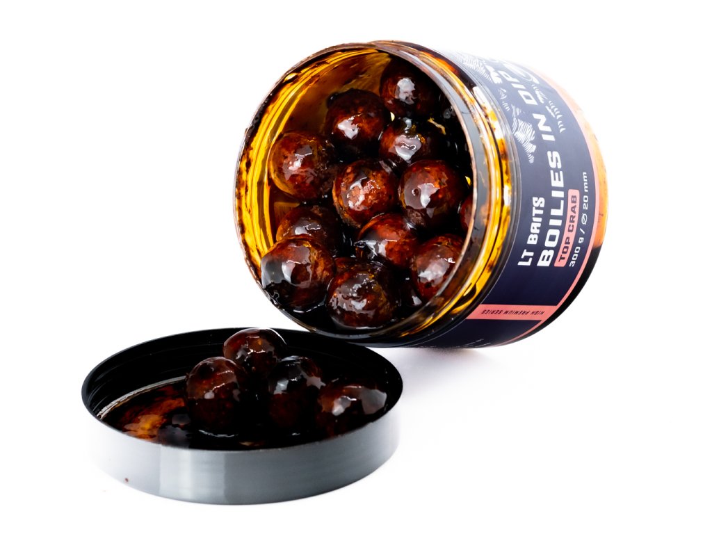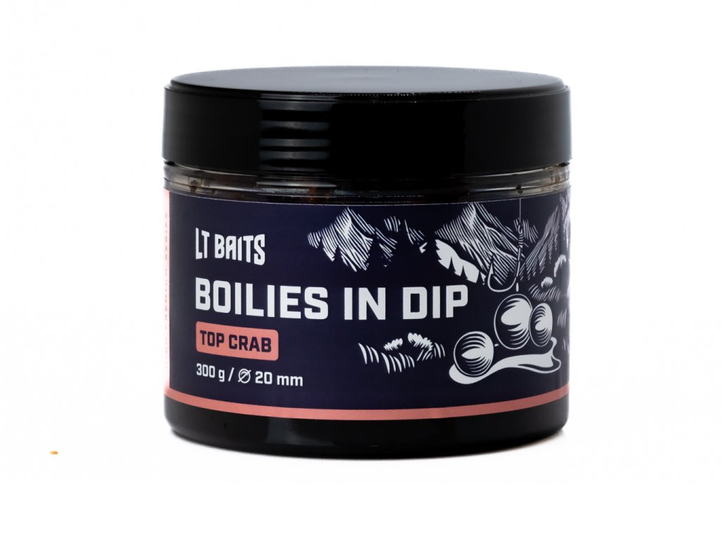Boilies v dipu Top Crab jsou tvrdší, dlouhodobě nadipované nástrahové boilies s výrazným krabím aromatem. Nenasákávají bahno, pracují okamžitě po dopadu do vody, jsou vhodné pro všechny typy vod a jsou PVA friendly . Velmi atraktivní pro kapry i amury.