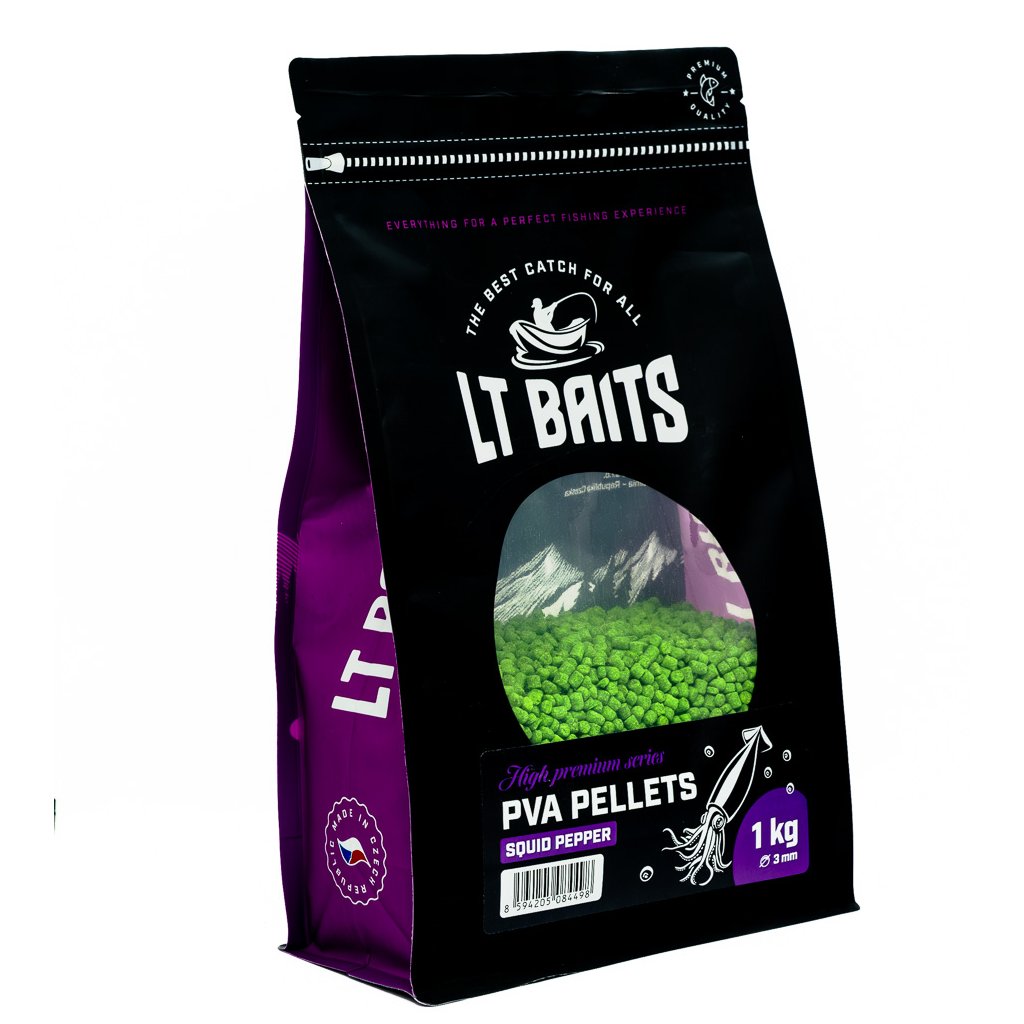PVA peletky LT Baits Squid Pepper 3 mm jsou vysoce atraktivní nástrahové peletky určené pro použití v PVA punčoškách i PVA pytlících. Jsou dostupné v různých barvách a příchutích – buď jako doplněk k danému boilies, nebo jako samostatná, výrazná varianta.